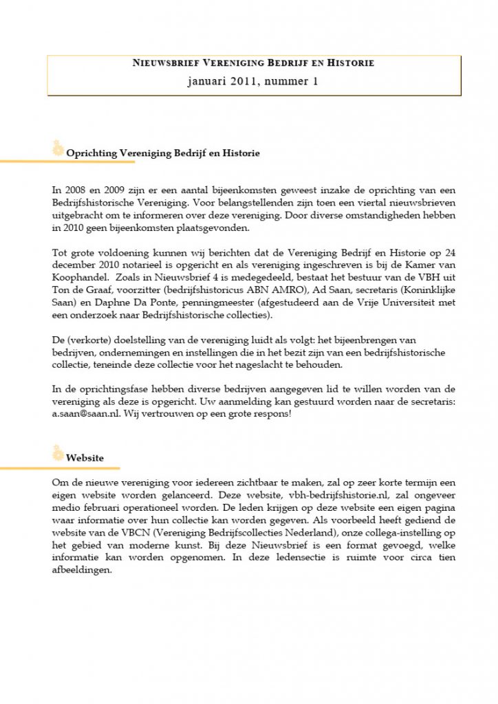 VBH Nieuwsbrief 2011-1